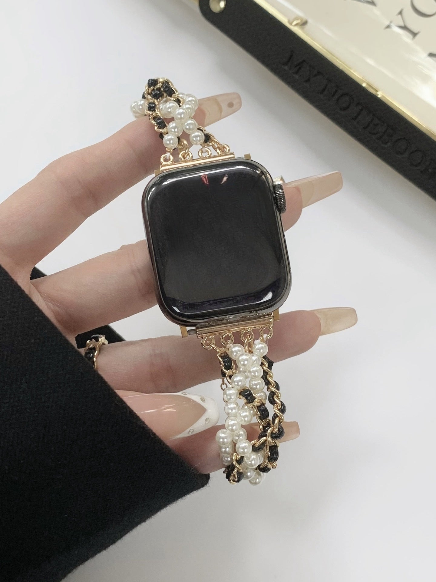 Fashion Casual Classic Style Leather Fabric Pearl Chain