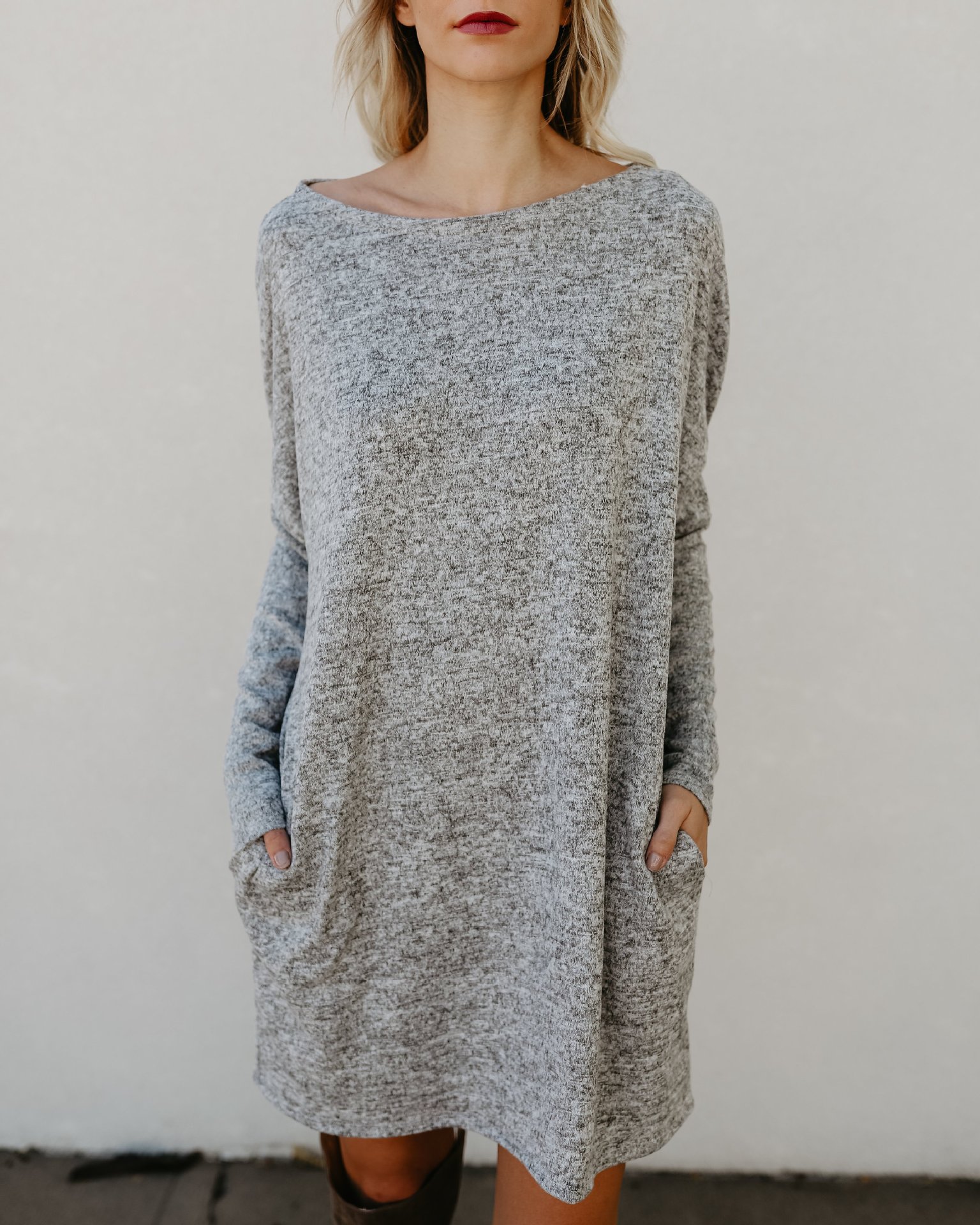 Ladies Simple Solid Color Sweater Loose Dress