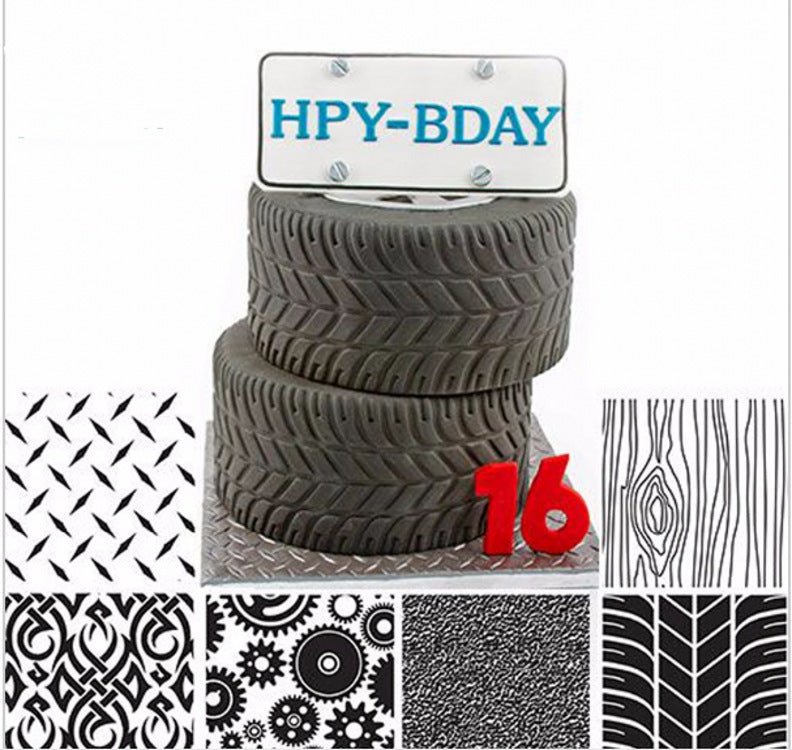 Lightly spray the textured mat with a cooking spray. Wipe off excess paper with a paper towel. Approximately 1/8 "thickness of soft xylose. Make sure the fondant does not stick to the work surface. If the fudge is powdered sugar, the work surface is pasted on the fondant and covered with a textured mat. Make sure to roll over the mat. Mat. Textured cake. For biscuits, cut the fudge with the same cookie cutter used in baking. For cake accents, cut the fondant with a mini pizza cutter: