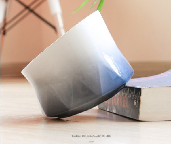 Process: Hand-sprayed glaze to form a gradient effect, white decals