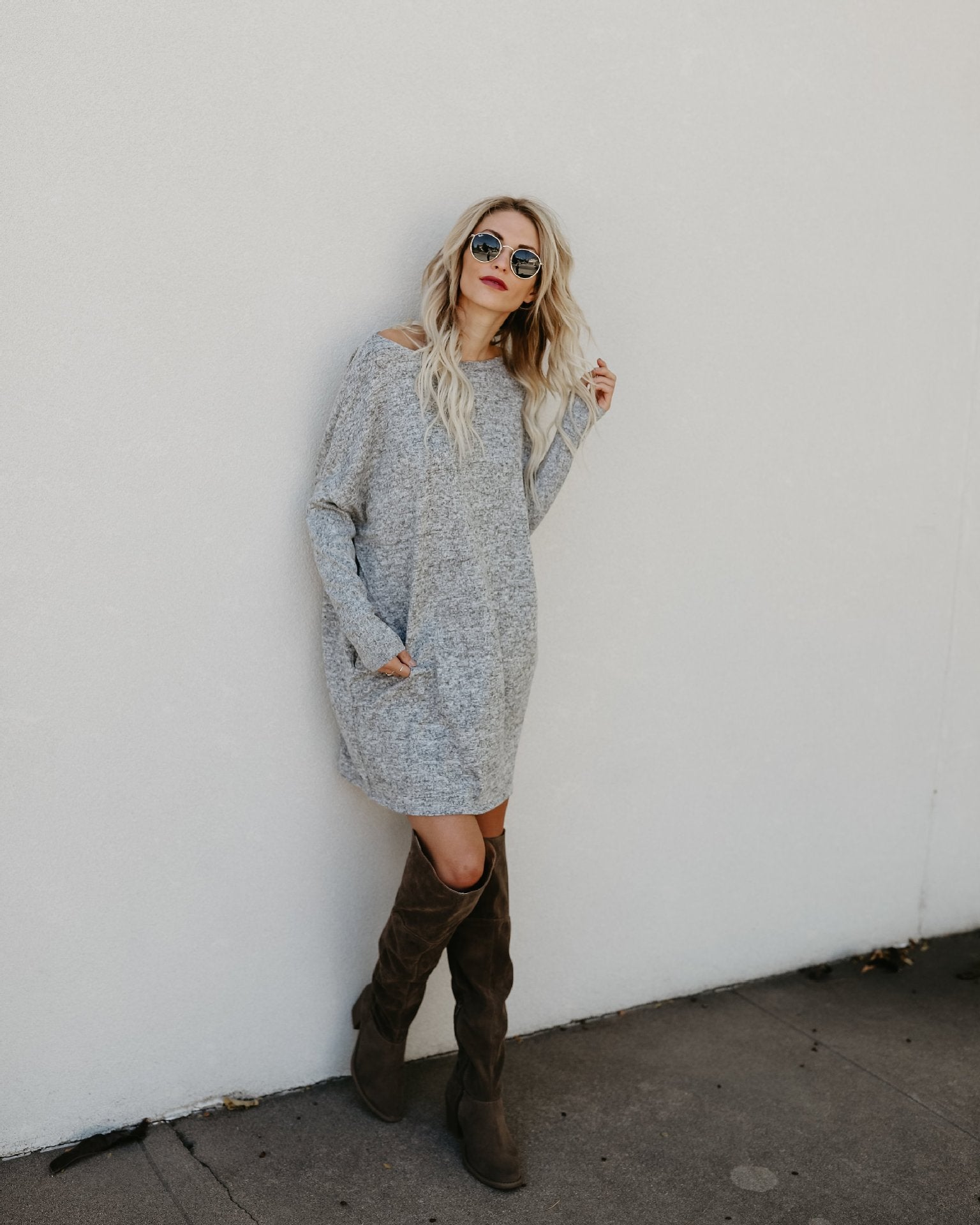 Ladies Simple Solid Color Sweater Loose Dress