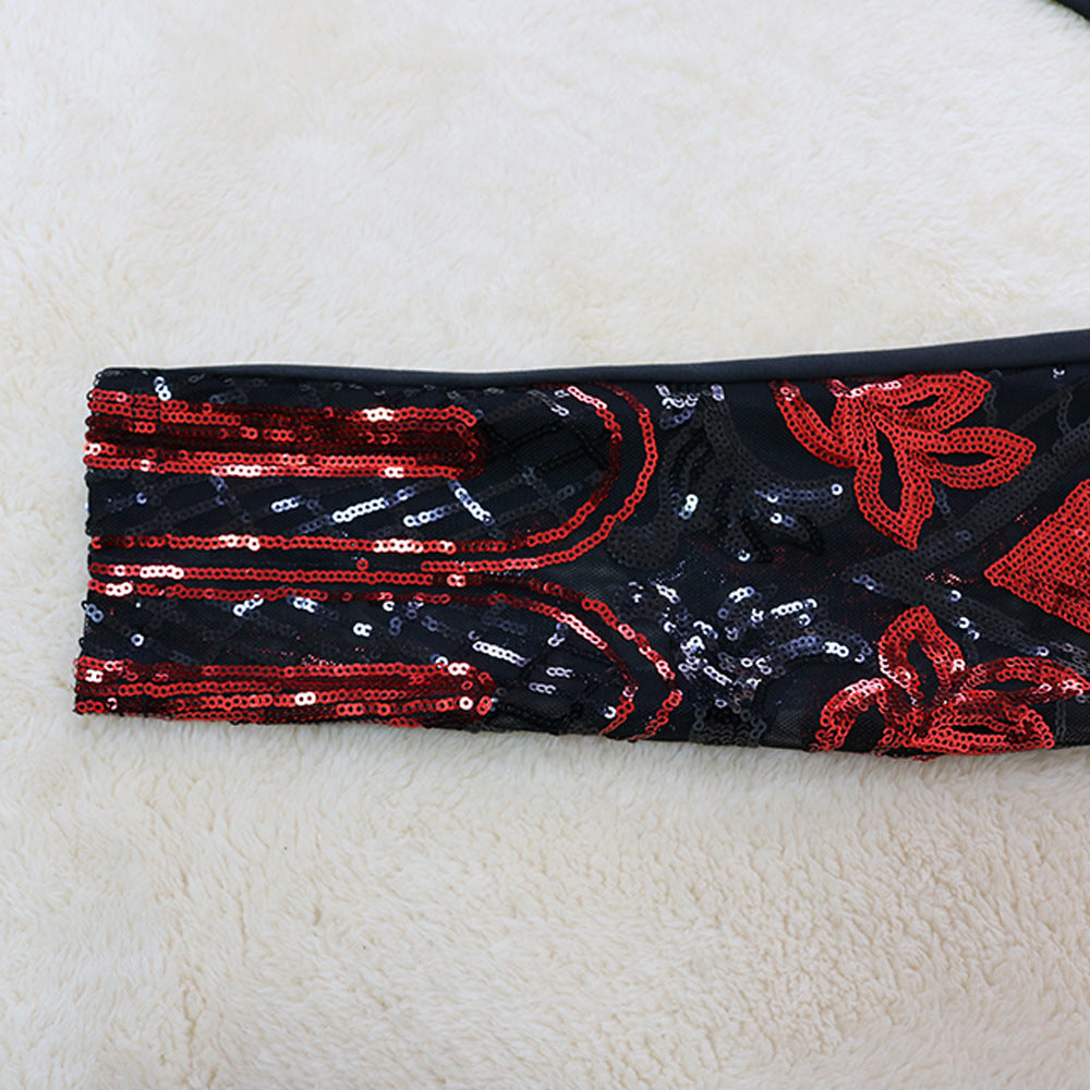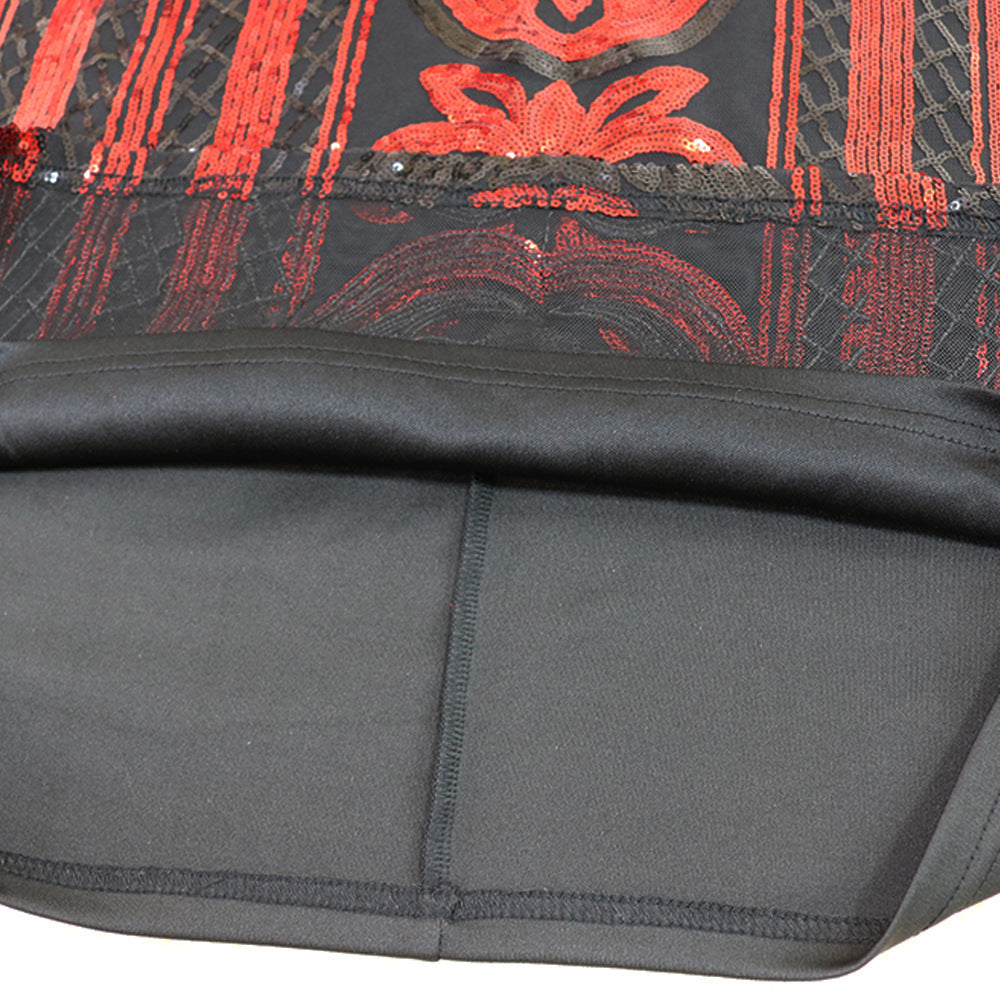Large Size Red Sequin V-neck Dress Women's Clothing
