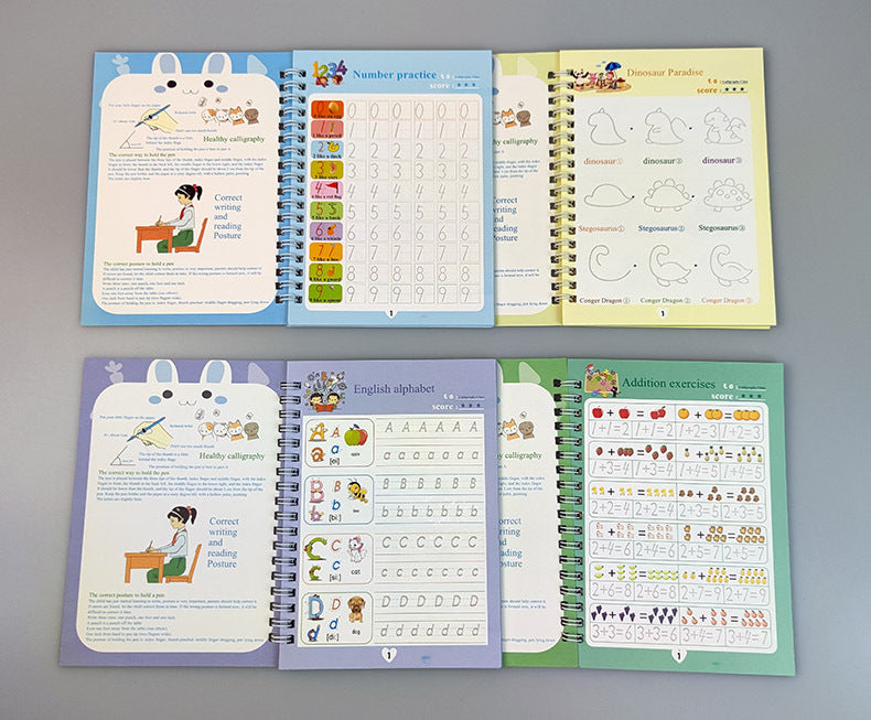 Square and three-dimensional slot design, track the writing of these books. Copybooks can be written in a standardized format, and use interesting and practical children in daily life to increase their interest in magic calligraphy: these books are interesting graphic combinations, with lovely colors and shapes, which can improve memory and care for children, making them very interesting, and children can learn a lot
