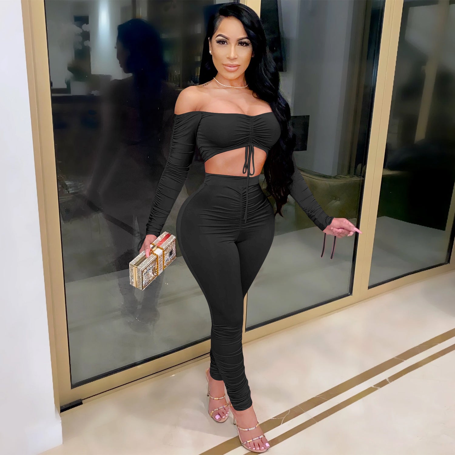 Pleated Off-shoulder Drawstring Oversleeves Lace-up Women's Clothing